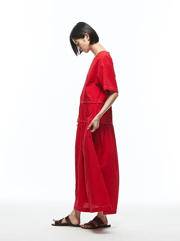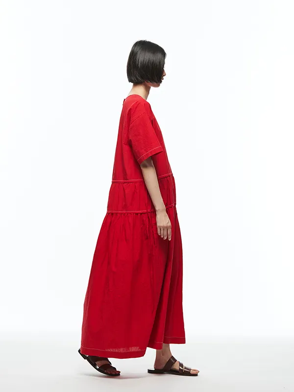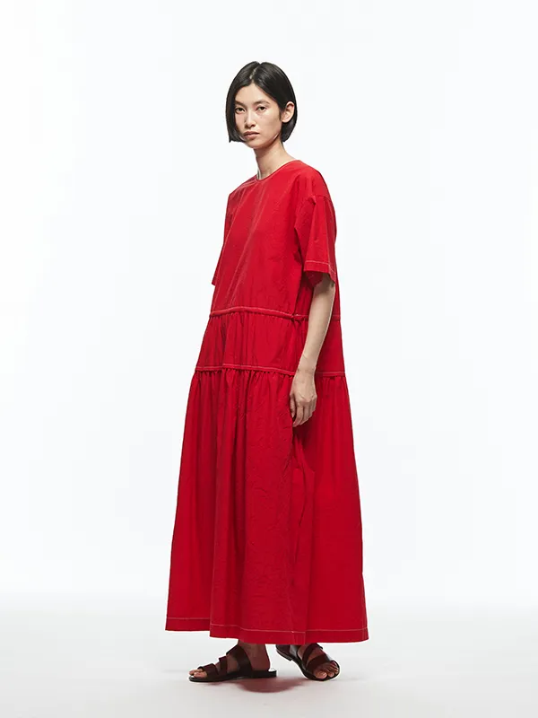 たっぷりとったボリュームが魅力のカフタンドレス。第一釦を止めてクラシカルに、釦を外してインナー合わせでレイヤードも楽しめる2WAY仕様です。ギャザーをとったゴムの袖口で袖のアレンジが簡単なのも魅力。